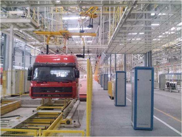 該滑撬輸送系統(tǒng)從涂裝車間轉(zhuǎn)掛工件,載碼后,自動行走進(jìn)入總裝PBS庫區(qū),自動分類存儲到不同的存儲線路內(nèi)。按生產(chǎn)調(diào)度指令自動調(diào)取工件,通過內(nèi)飾線下料升降機,至車身內(nèi)飾線,空撬體返回涂裝上料區(qū)等待上件。存儲區(qū)設(shè)置一條可以雙向運行的通道,作為快速通道和倒車通道。